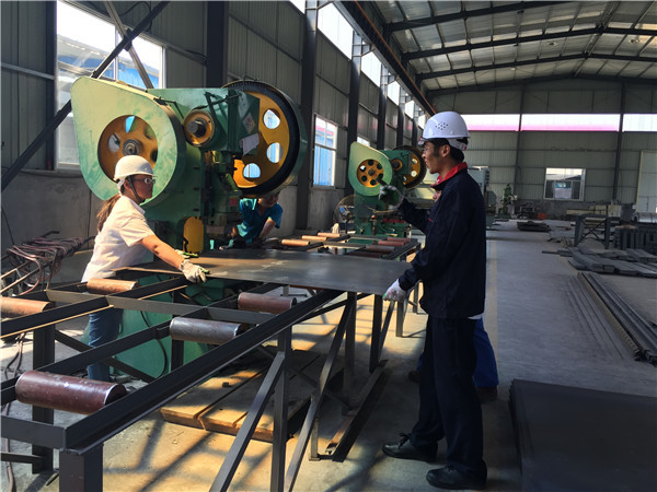 裝配式鋼板倉(cāng)由壓型板z 型鋼立筋組成小倉(cāng)、矮倉(cāng)可以不設(shè)立筋或只設(shè)單筋每塊墻板對(duì)應(yīng)一根立筋) , 大倉(cāng)、高倉(cāng)必須設(shè)置雙筋且立筋壁厚要逐次加厚。壓型鋼板從上到下要逐次加厚壓型鋼板以卷板為原料采用輥壓法在工廠預(yù)制完成逐道輥壓一次成型波紋形成后再經(jīng)過(guò)沖孔工序、彎弧工序和鍍鋅工序等完成預(yù)制墻板工序包裝后運(yùn)往倉(cāng)庫(kù)或現(xiàn)場(chǎng)進(jìn)行安裝。