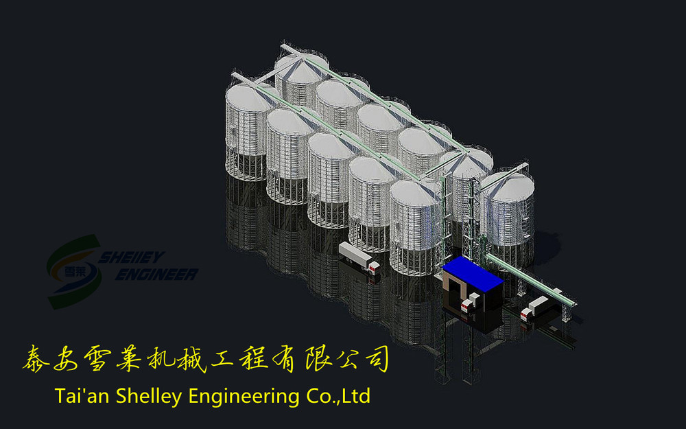 (4) 風道:對于裝配機械通風系統(tǒng)的鋼板倉,基礎(chǔ)表面預(yù)留有平行風道和人字行風道。